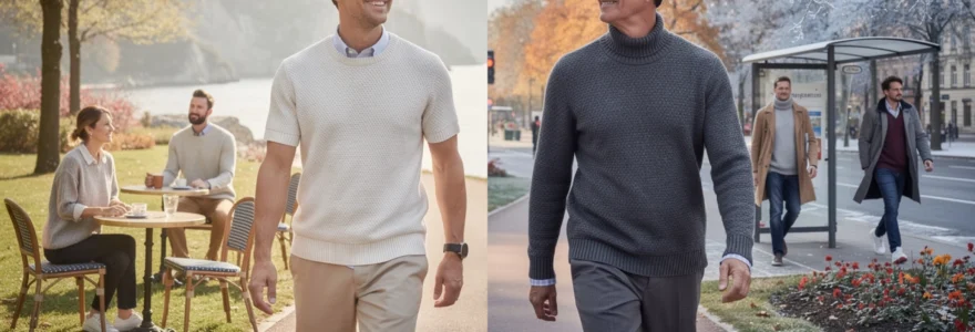 Dans les zones montagneuses ou à climat alpin, où les écarts de température entre matin et après-midi sont particulièrement marqués, le layering devient la règle absolue. Un pull à manches courtes en laine mérinos fine peut servir de couche intermédiaire polyvalente en été, alors qu’en hiver, un pull à manches longues plus épais sera indispensable, même pour des températures affichées comme “douces” en vallée. Les climats méditerranéens, eux, invitent à privilégier les manches courtes en maille noble (fil d’Écosse, Sea Island) presque toute l’année, en conservant quelques pulls manches longues légers pour les rares journées vraiment fraîches.